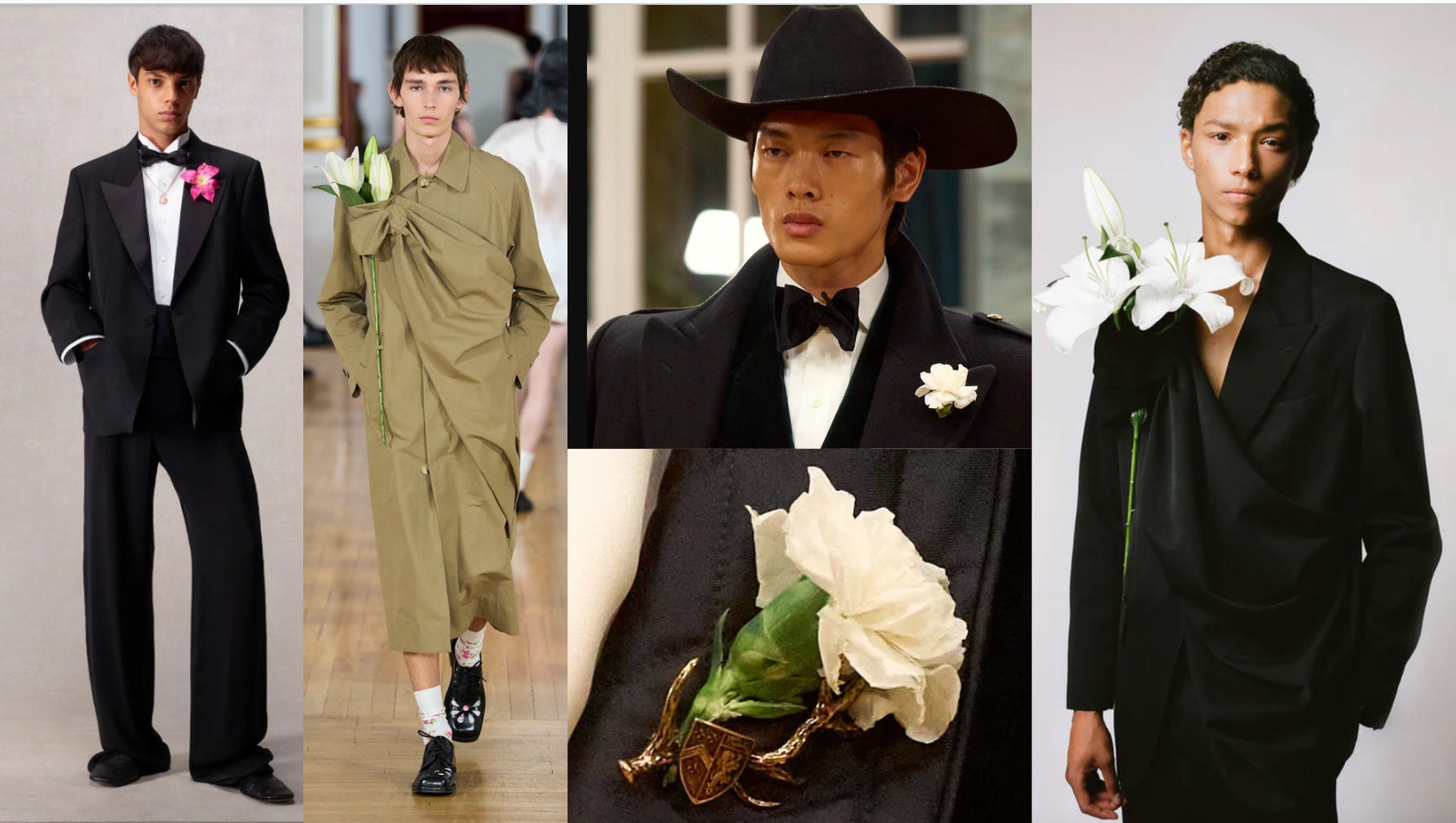 Think boutonnières and think, inevitably, of the prom-night nightmares of the past. Still, there is a real opportunity for menswear, and particularly for jewelry designers, to reclaim them. The oversized floral brooch appliqués that have become common in womenswear feel like a natural crossover. Why should men not pin a real flower to a sweater or a lapel? Simone Rocha and Gucci are two who made a convincing case for a boutonnière on the Spring 2026 runways, while Ralph Lauren’s Men’s collection revisited the idea more literally, using a peacoat button hole for one look and a pin that perfectly held a stem in another, and feels like an opportunity ripe to be totally rethought.