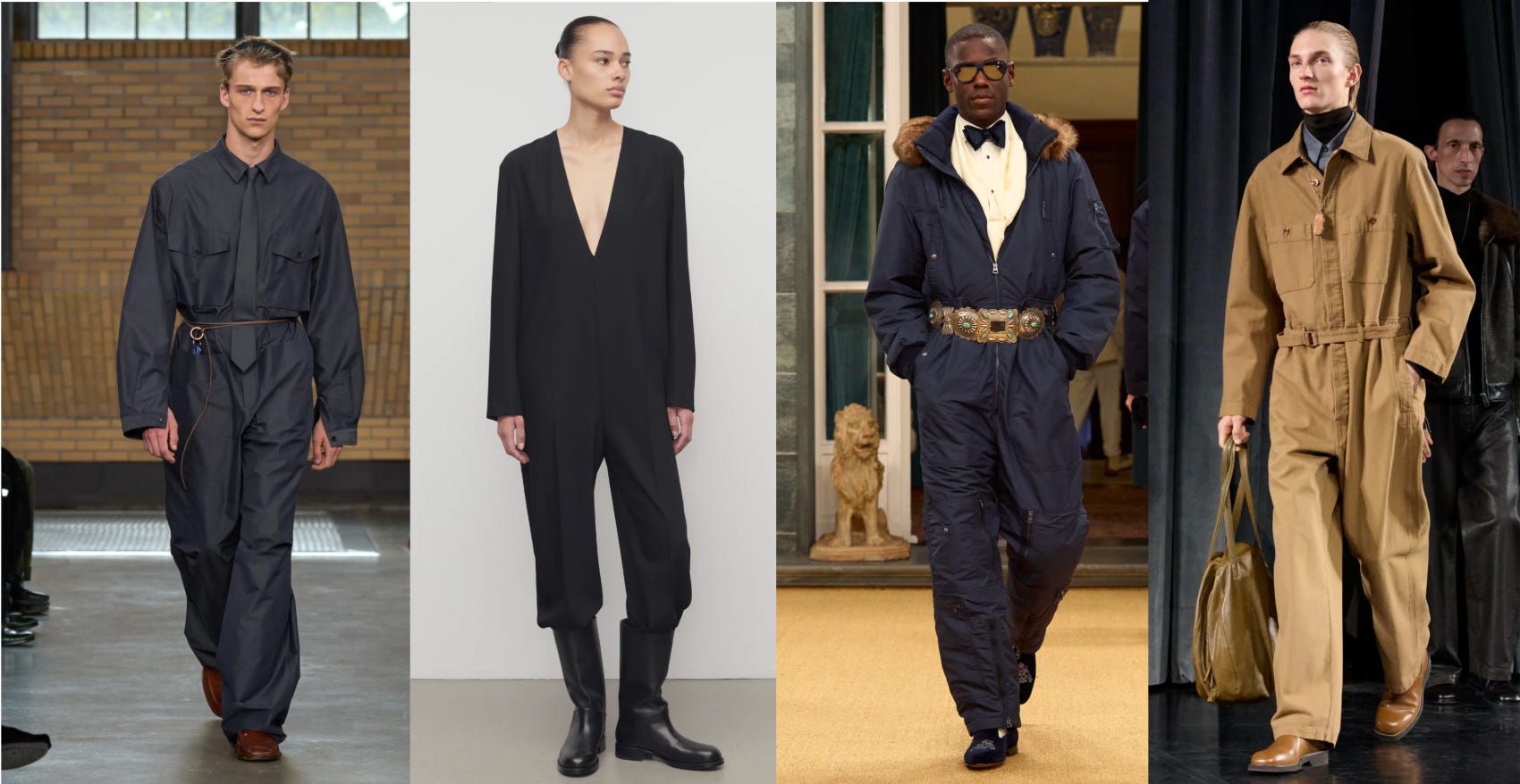 That said, my attention has shifted to how menswear designers are styling the piece. At Calvin Klein, the idea moved into blue-collar-meets-white-collar territory with a monochrome boilersuit finished with a matching tie. Ralph Lauren’s men’s Fall 2026 runway, which debuted this month, paired a ski-suit-meets-flight-suit silhouette with tuxedo shirting and a belt. At Lemaire, it was layered over a turtleneck and button-down, with the coverall worn on top.